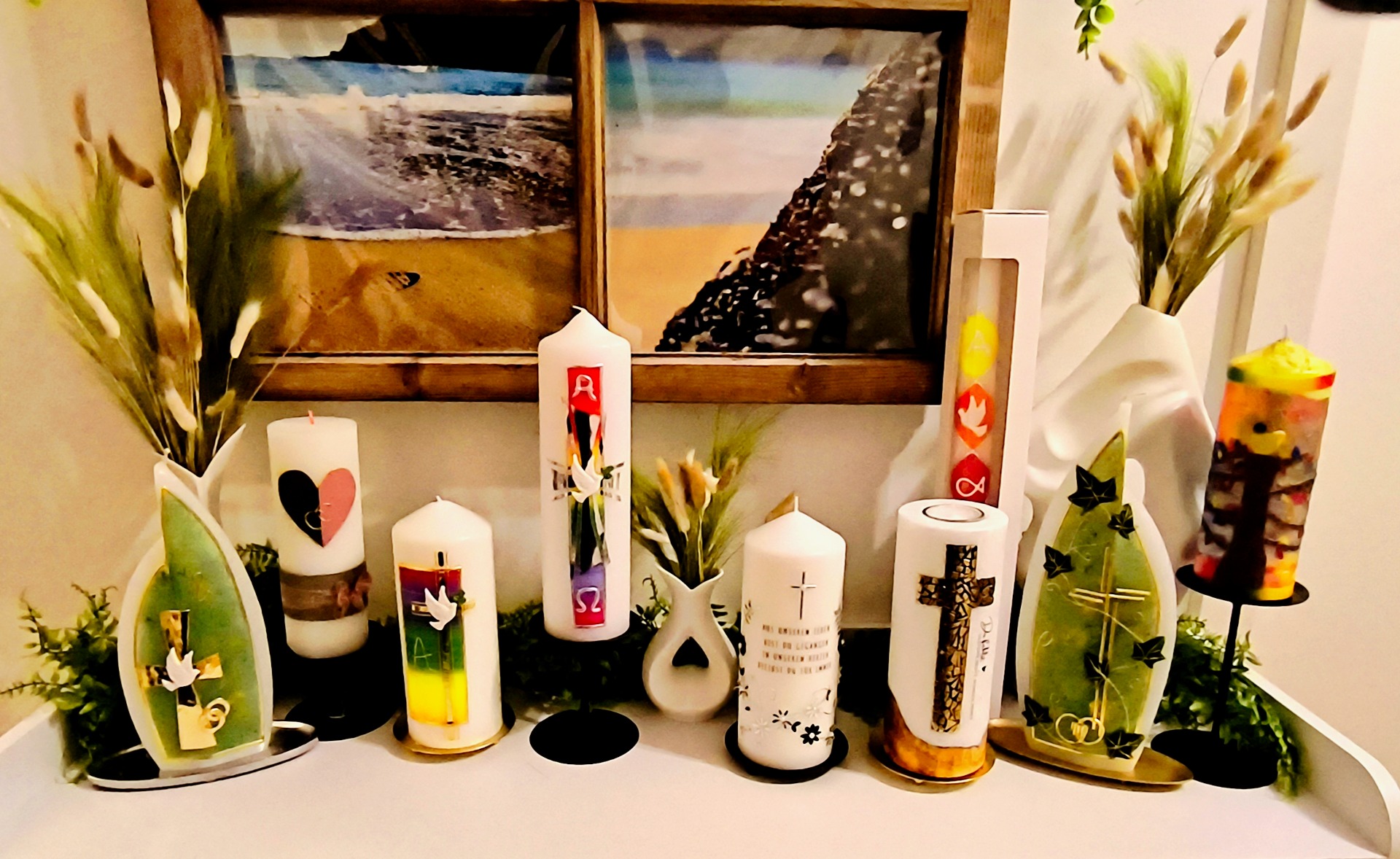 Finde Inspiration in der Fotogalerie oder teile mir deine individuelle Wünsche für deine Kerze mit.